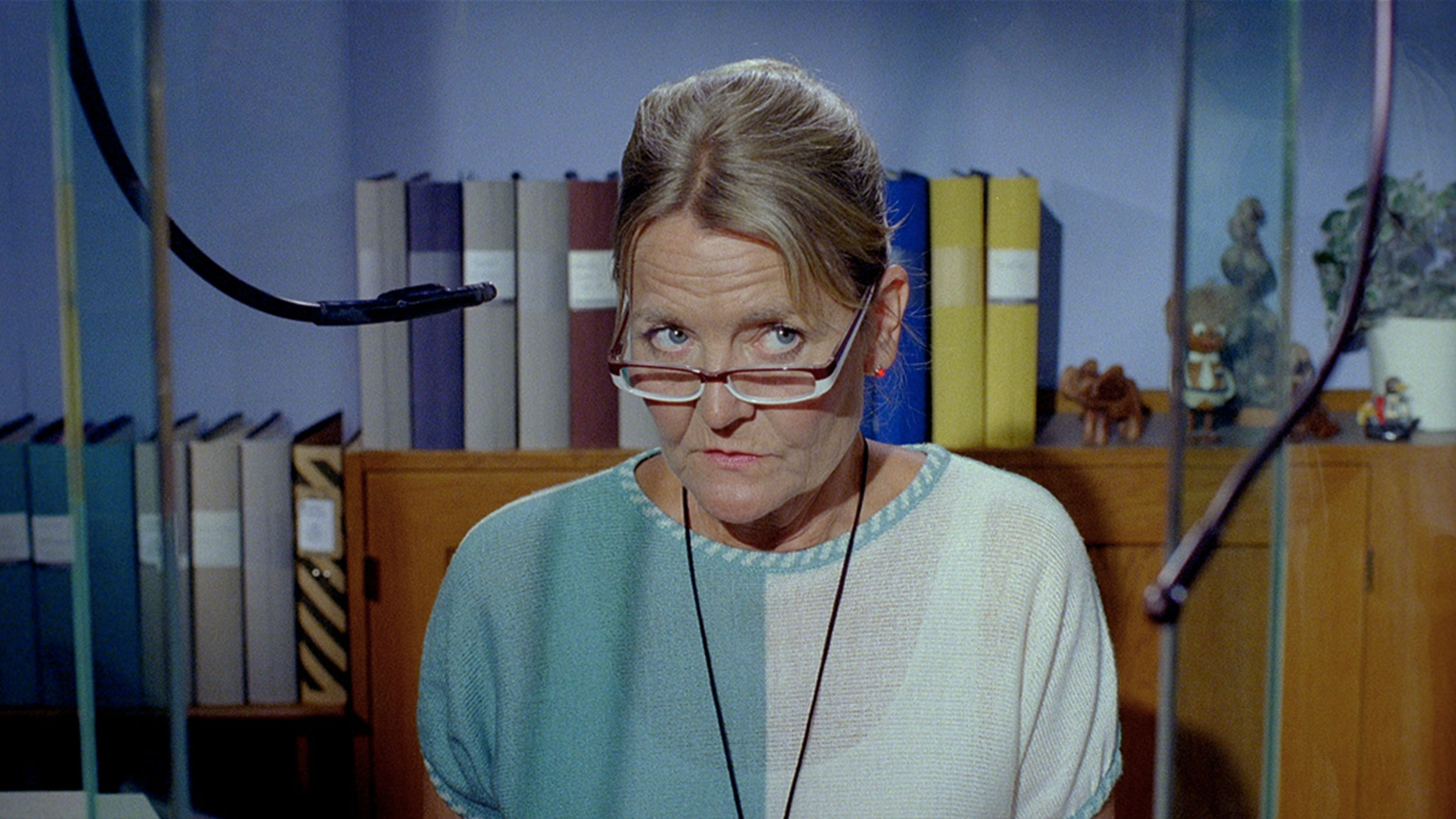 Ann Petrén som bankreceptionist